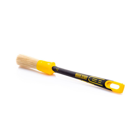 Work Stuff stworzył linię pędzelków detailingowych RUBBER wyróżniających się trzonkiem pokrytym gumą, dzięki której pędzelek leży lepiej w ręce, nie wyślizguje się co jest istotne podczas mycia samochodu. Dzięki temu pędzelkowi bez problemów wyczyścisz grill samochodowy, wnęki drzwi, panel sterowania szybami, okolice wlewu paliwa, komorę silnika, felgi i wszystko gdzie nie jesteś w stanie dotrzeć szczotką lub rękawicą. Pędzelek z naturalnym włosiem jest uniwersalny, dobrze spisuje się zarówno wewnątrz na jak i na zewnątrz pojazdu.