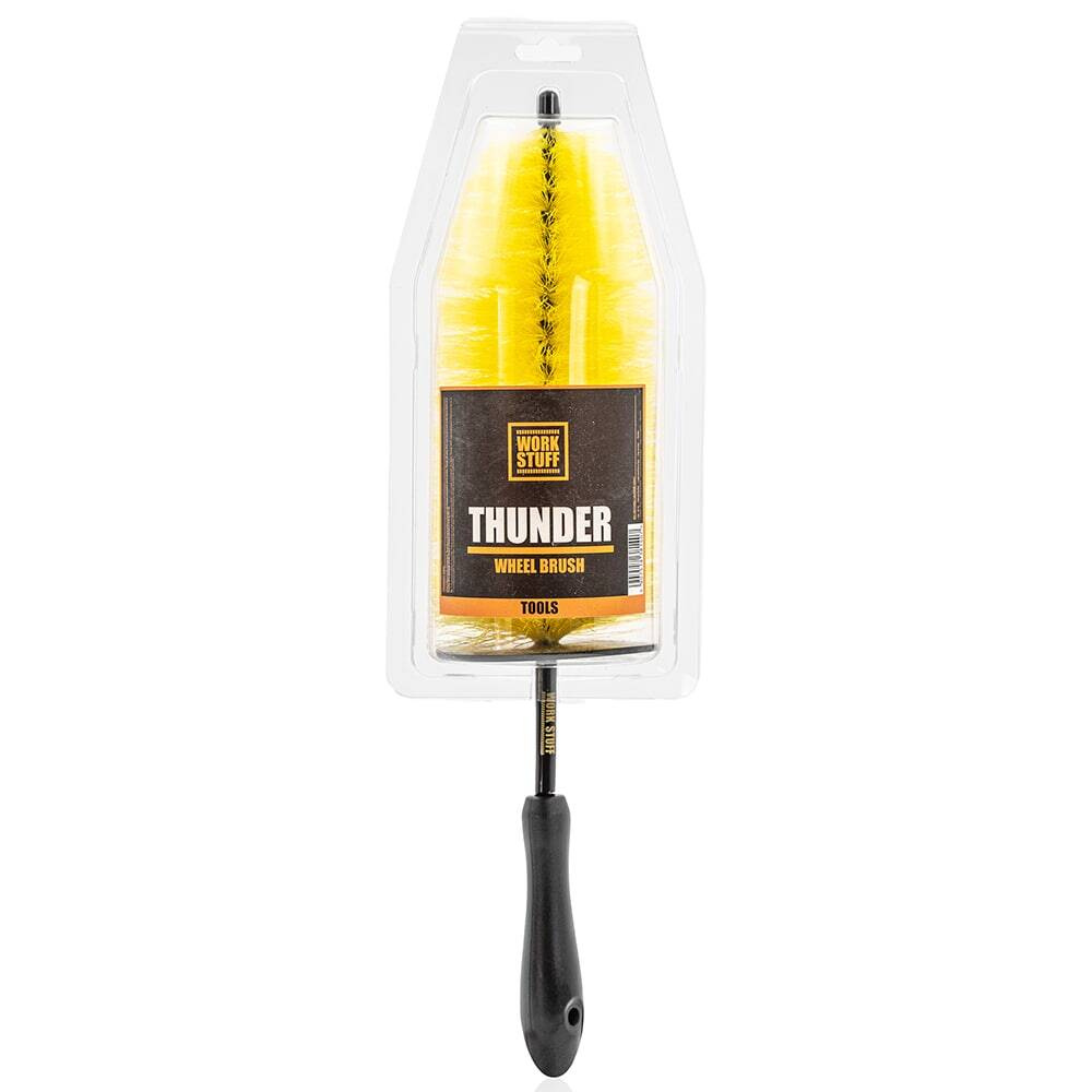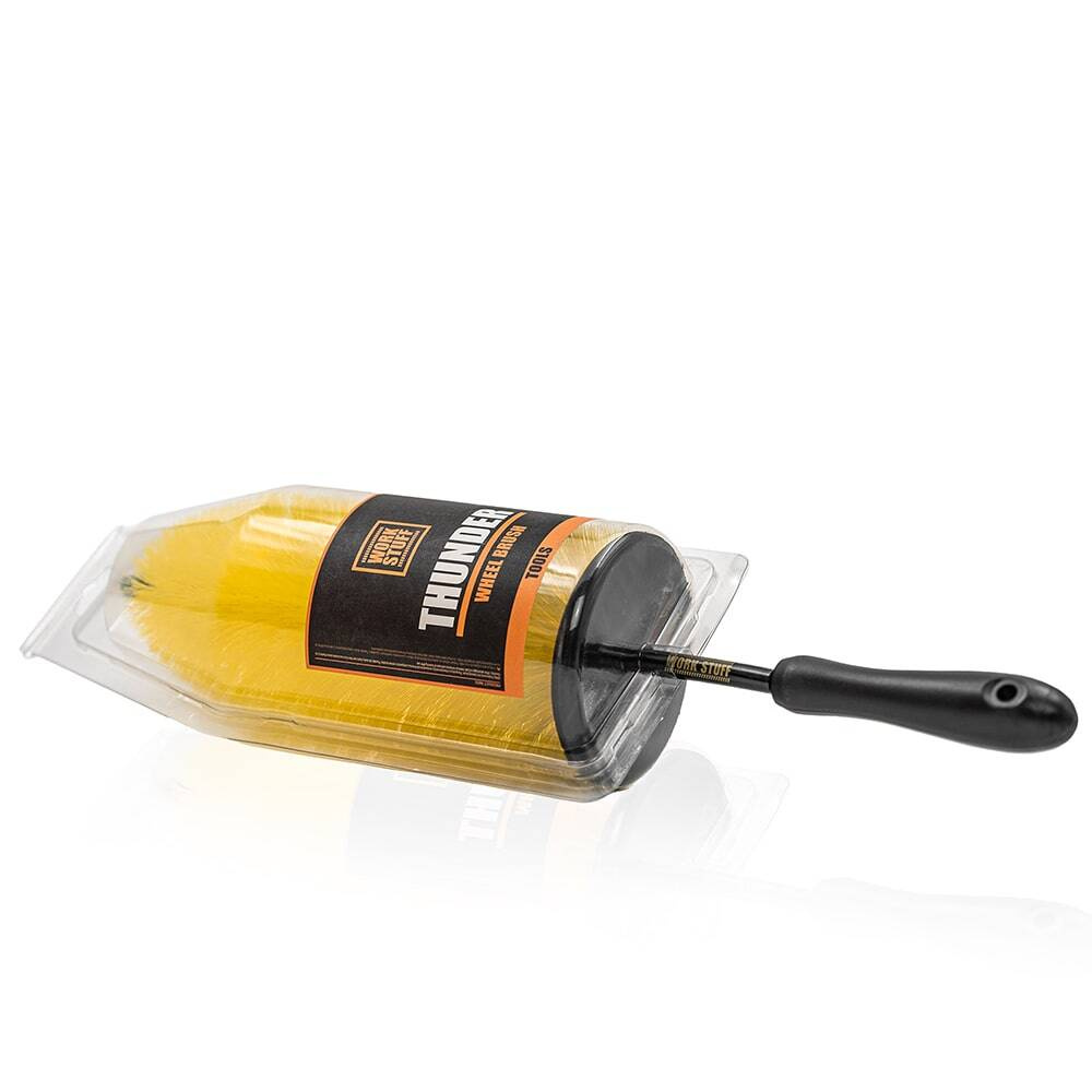WORK STUFF THUNDER Wheel Brush to szczotka przeznaczona do dokładnego mycia felg, wyróżniająca się nadzwyczajną miękkością włókien w porównaniu z innymi produktami. Elastyczność szczotki THUNDER pozwala na bezproblemowe dotarcie do głębokich zakamarków felgi. Ponadto, szczotka charakteryzuje się odpornością na działanie silnej chemii oraz łatwością czyszczenia włókien po pracy. Jest to największa szczotka w ofercie WORK STUFF.
